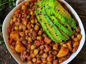 A savoury stew dish made of boiled beans mixed with boiled maize.