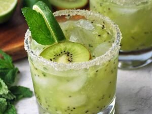 A refreshing lightened-up cocktail recipe made with fresh kiwi fruit, agave nectar, and club soda.