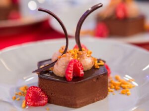 Our thick & creamy rum flavoured dark chocolate mousse garnished with crunchy homemade honeycomb
