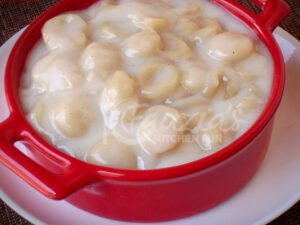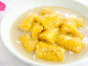 Tiny dumplings cooked in a sweet creamy coconut sauce