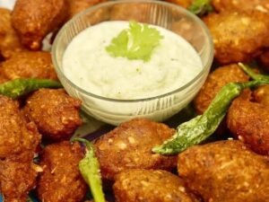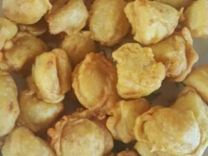 Spiced deep fried potatoes dipped in gram flour mixture.
