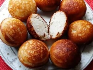 Sweet fluffy rice, cardamom and coconut doughnuts